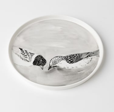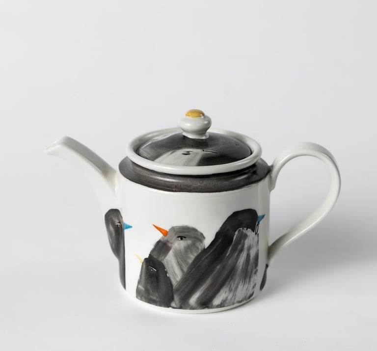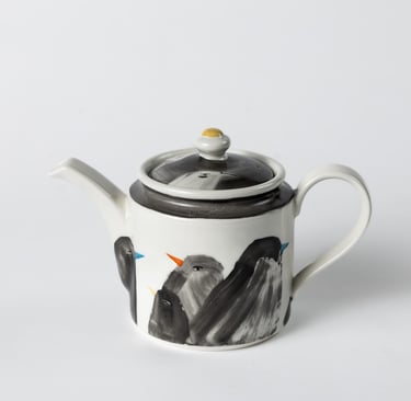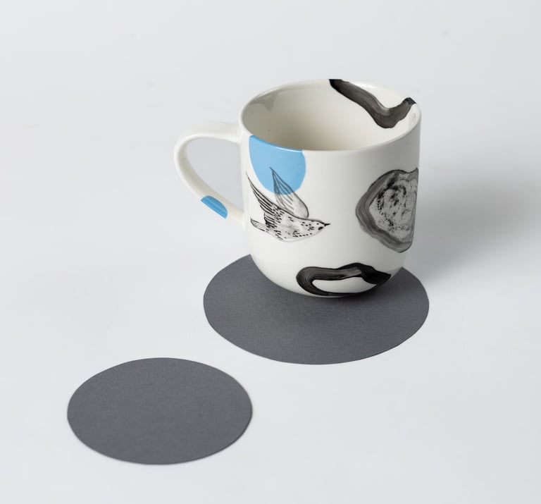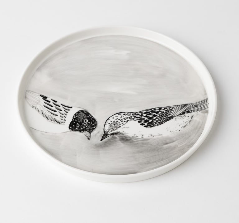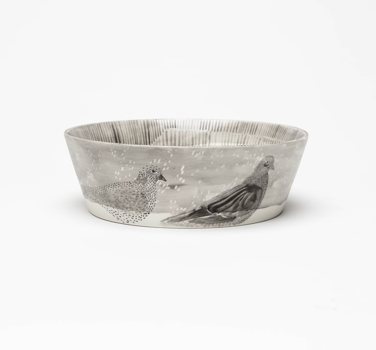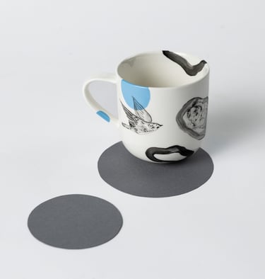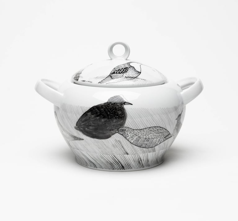 Satiekās porcelāna trauks, daba, grafika un cilvēks